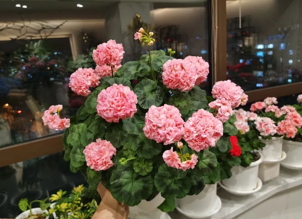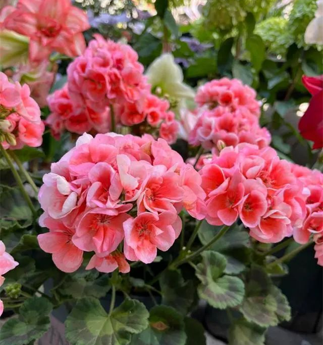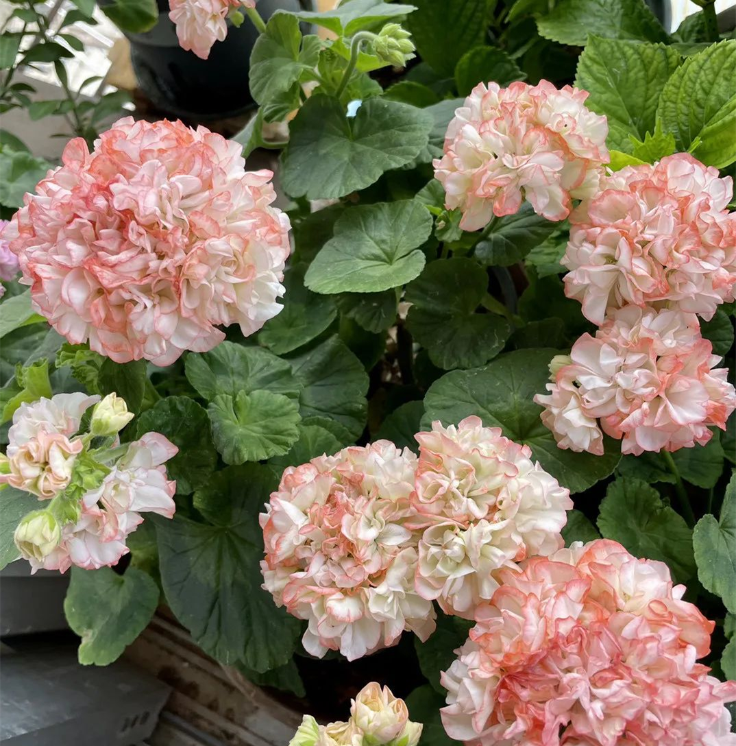 Its plant height 30-35 cm, Suitable for planting in small spaces such as balconies; Double-petaled flowers, the flower shape is also a delicate rose shape, and the flower color shows different colors from * to dark pink with the change of light and other factors; Horseshoe shape blade There are broad, undulating chocolate brown lines, which are very recognizable; It There is one more advantage that other geraniums don't have → the flowers have a fresh and pleasant floral fragrance.