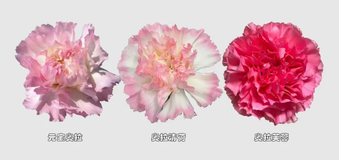 Ona is an Internet celebrity explosive carnation Series variety (There are sub-varieties such as Yuanbao Aola, Aola Qinghe and Aola Furong under the name) The flower shape is particularly like peony, the petals are serrated, and the flower color is generally pink (of each sub-breed Please see the color ↓ picture) Immortal spirit fluttered.