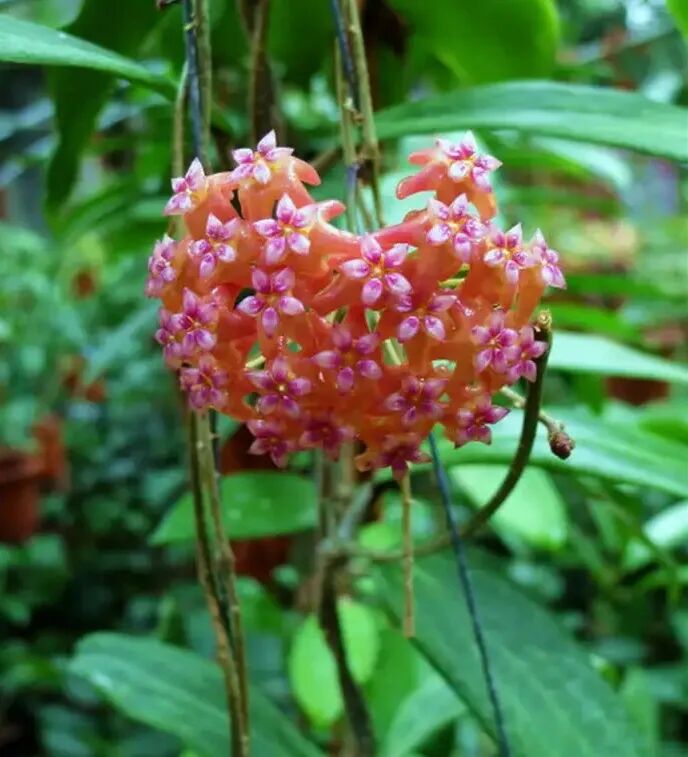 Bengelton's hoya has fewer leaves, and its leaf color will turn red in full sunny environment, and its leaves are Elliptical to oval, The veins are obvious; Corolla pink orange to red (flip backwards) , the secondary corolla is purple-red, and it is said to have a faint indescribable floral fragrance.