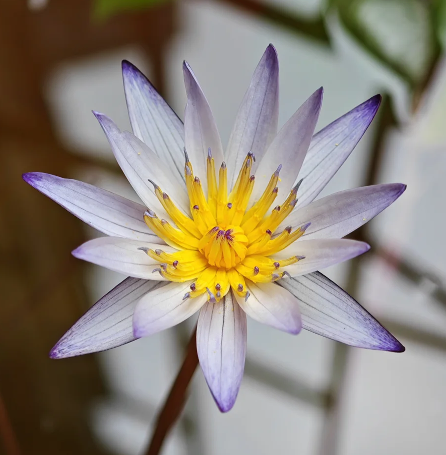 Purple Joey belongs to Medium-sized water lily variety, It is the second tropical water lily selected variety in 2014. White petals with purple tips ( With the opening time, the purple part gradually covers ) The stamens are golden yellow.