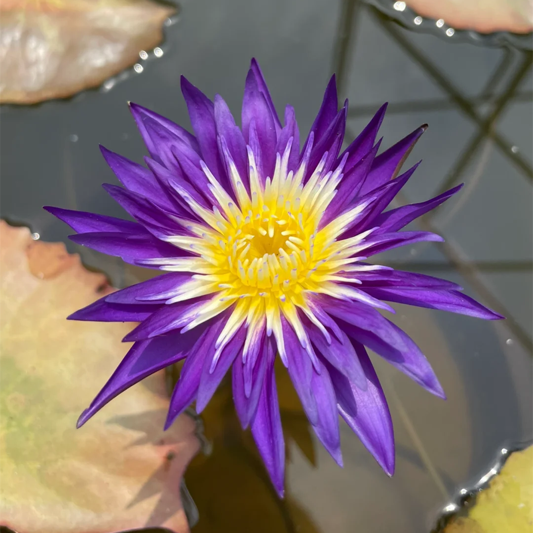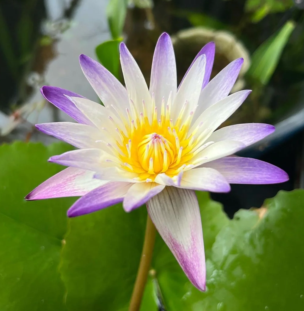 Black Beauty Belonging to Small and medium sized Tropical water lily Variety, Petals white , the top is purple and the stamens are golden yellow. Its flowers are large, fragrant and viviparous, which is Well-known Classic variety grown at home..