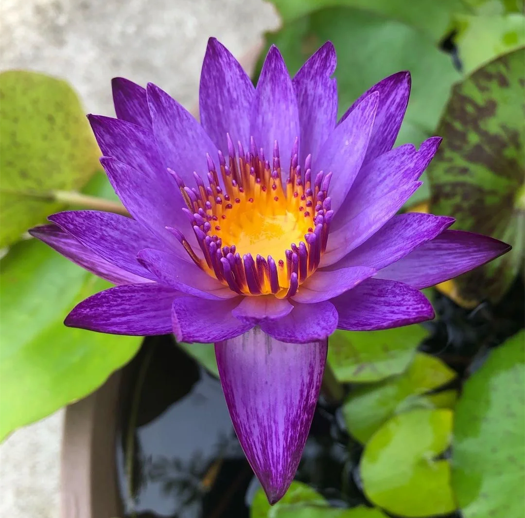 Nymphaea small flowers belong to tropical Small Native Water lily varieties, Flowers and leaves have ornamental value: Blue-purple petals with white spots, Tender green The leaves have red, brown and black spots, so they are also called "tabby water lilies".