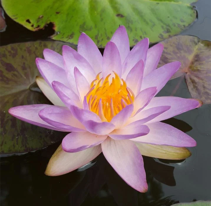 Chirag belongs to Medium-sized water lily variety, one of the few truly lavender tropical water lilies on the market today ( And its lavender color is much darker than the others ) , the flowers are fragrant, and the leaves are green with maroon markings.