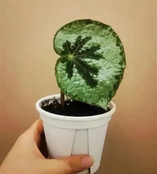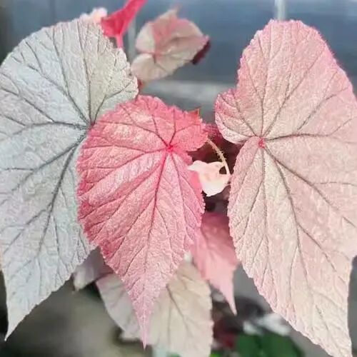 Silver coin begonia is a species of toad-leaf begonia with pink-silver leaves (Little leaflets are red) , there are irregular green lines, and the adult leaves are flooded with light.
