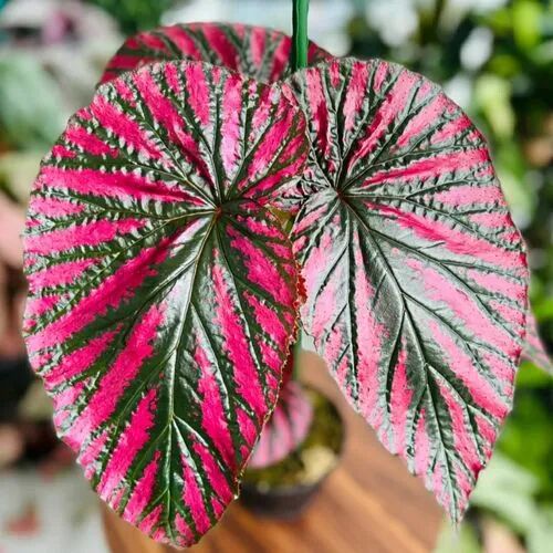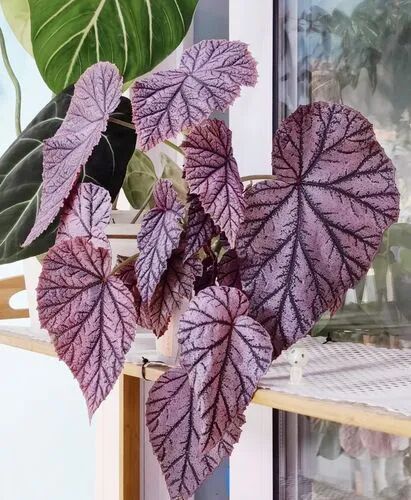The leaves of Dingli begonia are large and thin, which is Standard wing-shaped lobes, It has a frosted texture to the touch, the leaves are dark pink and purple, the veins are clear, and big pink flowers bloom.