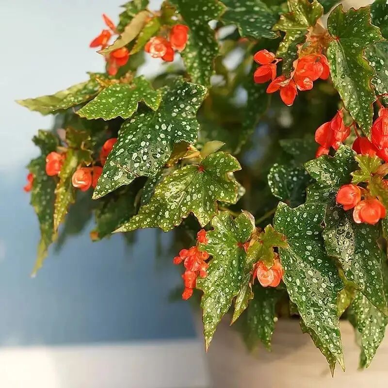 Puffer fish begonia is a horticultural species of four-season begonia, and it is a "sister" with pink swordfish begonia and trout begonia. its The leaves are numerous and dense, with emerald green with white spots and small red flowers (Pink swordfish begonia has pink flowers, trout begonia has white flowers) 。