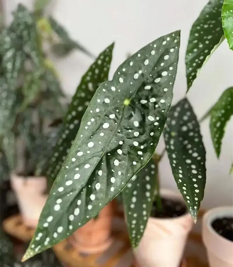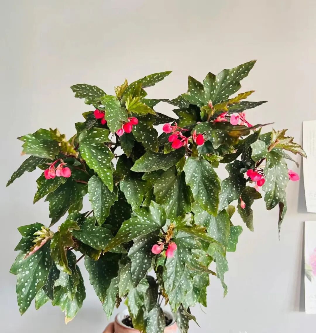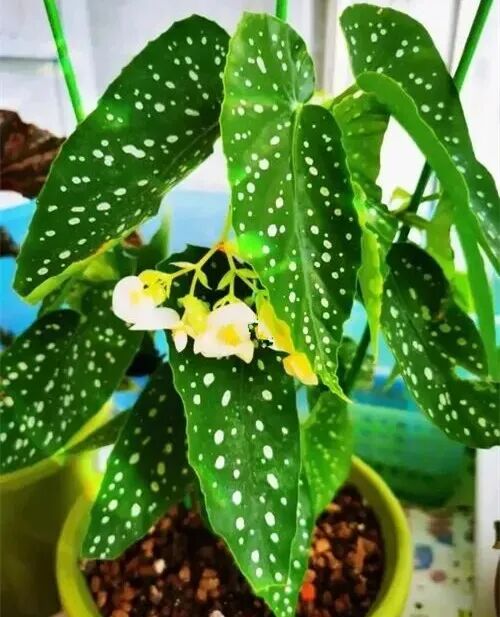 Sierra Mountain King Begonia is The "king" variety of the polka-dot begonia family is also an online celebrity begonia variety. its The leaves are dark green (with a silk texture) , cloth with white spots (The spots in dark culture environment are larger) , with little light pink flowers (First opening white) 。