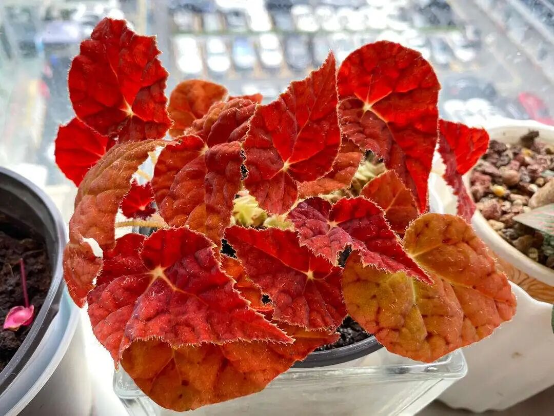 The leaves of Begonia Burma are large, round, tough and thick, with many veins distributed, resulting in obvious concave-convex feeling on the leaf surface divided by veins, and green leaves (Redness in bright light, blue light in dark nourishment) 。