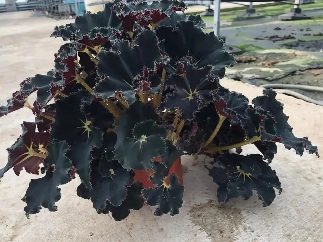 Black Knight Begonia It is one of the few plants with pure black leaves , its blades are all black (Affected by light and other factors, it will show different degrees of blue-black, dark blue) , there are villi on the leaf surface and margin, There is also a distinct bright yellow color in the center of the leaf , like the stars in the night sky.