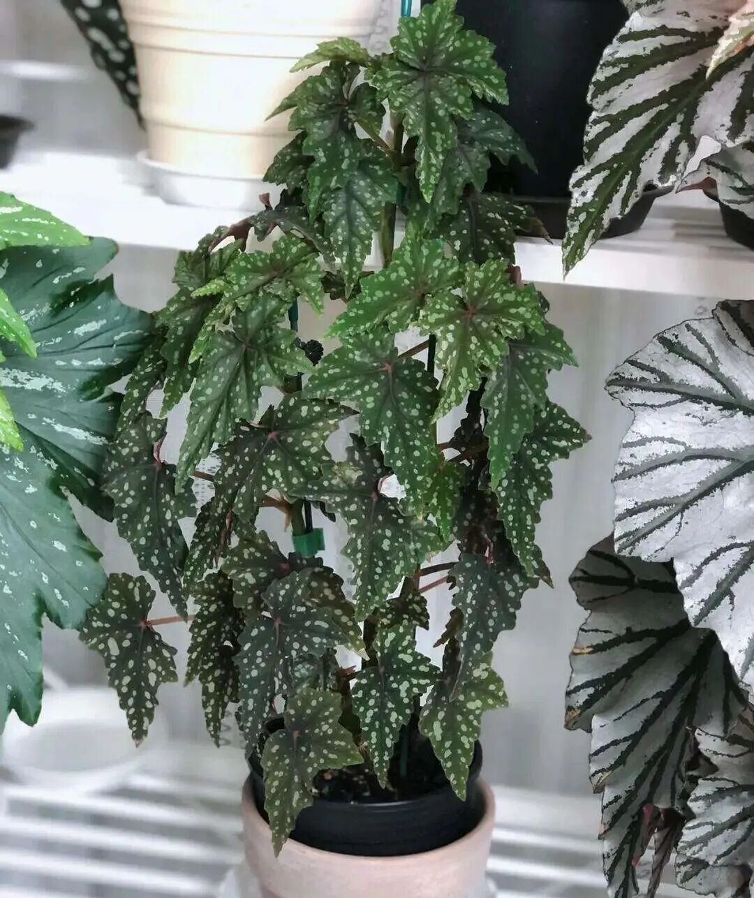 Juanita Begonia's leaves are green and covered with white spots (Dark nourishment, water control, and more white spots) It is said that it blooms light pink flowers.