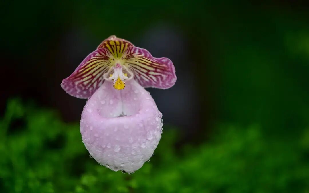 Paphiopedilum is a plant of orchidaceae. Its lip-shaped petals are very large. The upper lip is oval or obovate like a lid, and the lower lip is sac-shaped like a big and deep pocket. It is named "Paphiopedilum", and it is also a national first-class key protected wild plant.