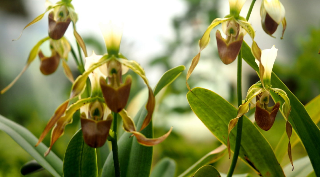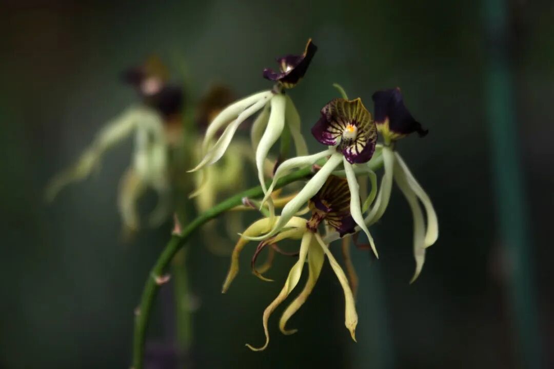 Orchids belong to the genus Calyx. First of all, comparatively speaking, its The plant appears very tall (about 50-100 cm). Secondly, its The flowers have extremely long and narrow sepals and petals, like spiders with slender legs. The flower colors range from white to yellow to light brown. The sepals and petals often have dark brown patches and spots, which make the overall look more mysterious.