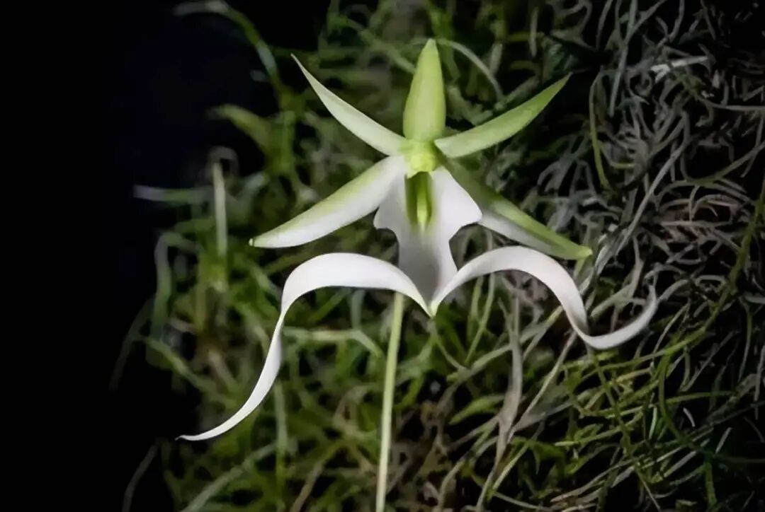 A plant of the genus Ghost Orchid of the Orchidaceae, white flowers and peculiar shapes, When the wind blows gently, those petals flutter with the wind, like "A Piao" floating in midair.