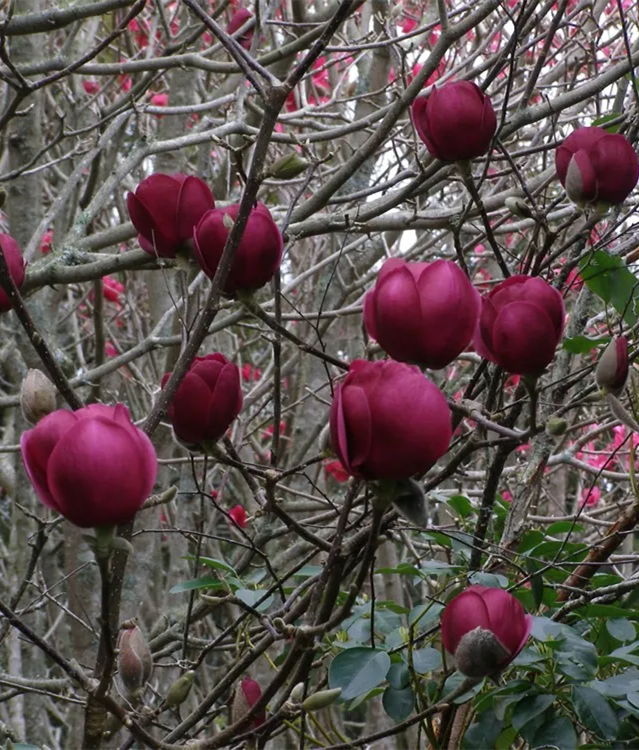 Because of its dark burgundy color and tulip-shaped flower shape, it is named. It is a very attractive magnolia variety.