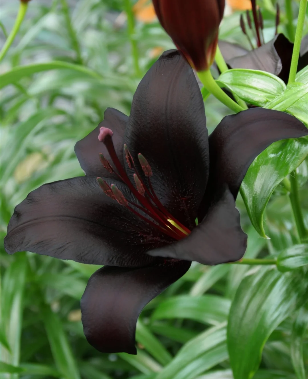 Black Knight Lily Also called "Night Stalker", the dark purple petals have satin luster, which is said to be the richest and darkest variety in lily world.