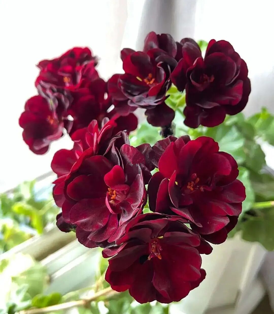 Tommy Black Rose The flowers of geranium are large, and the petals are very velvet. The color of the flower is dark at first, and it will turn dark red later.