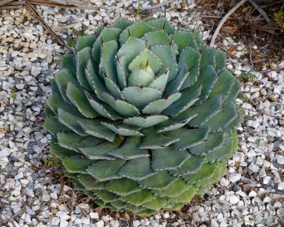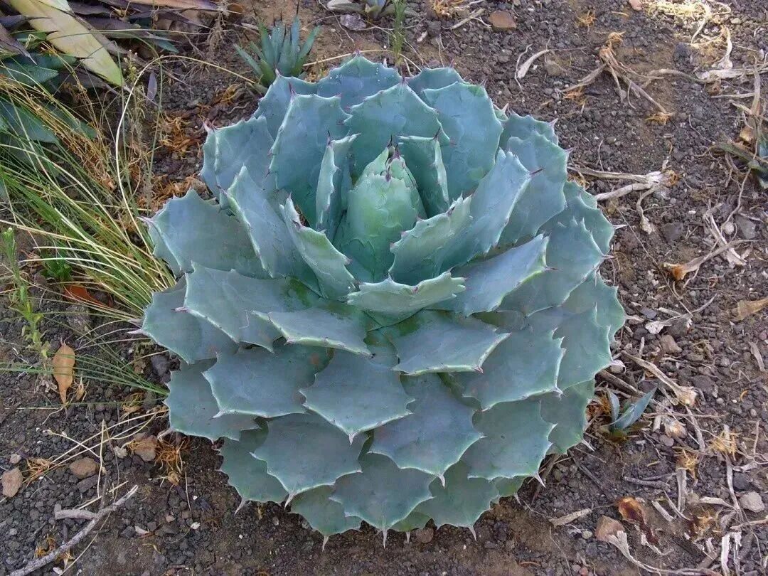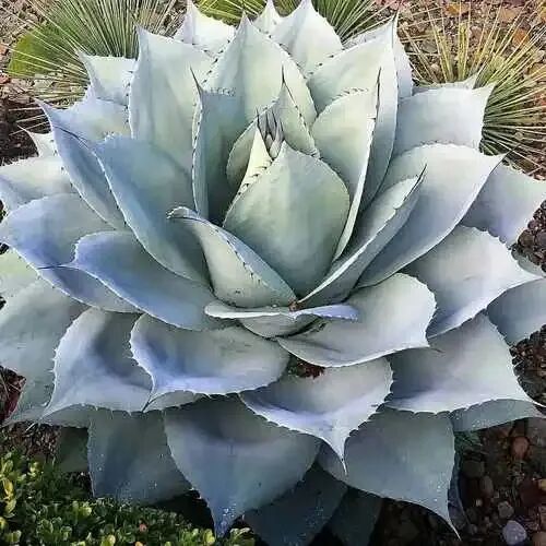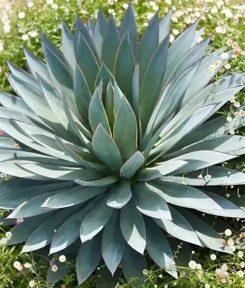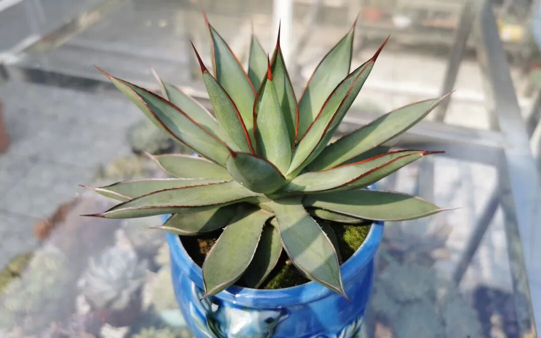 Blu-ray agave is A hybrid variety of Emerald Disk and Silk-leaf Agave, which grows slowly, most tall Can be up to 60 cm. Its leaves are blue-green with a slender reddish-yellow line on the edge with Fine teeth, with leaf apex Red thorn 。