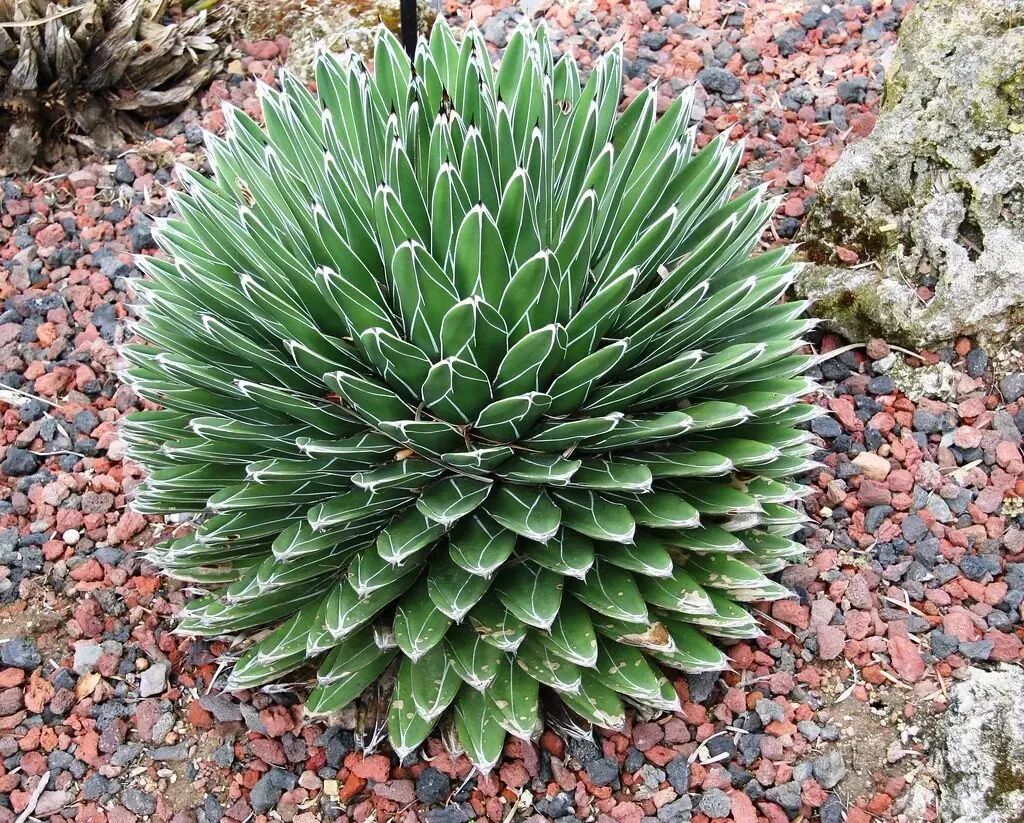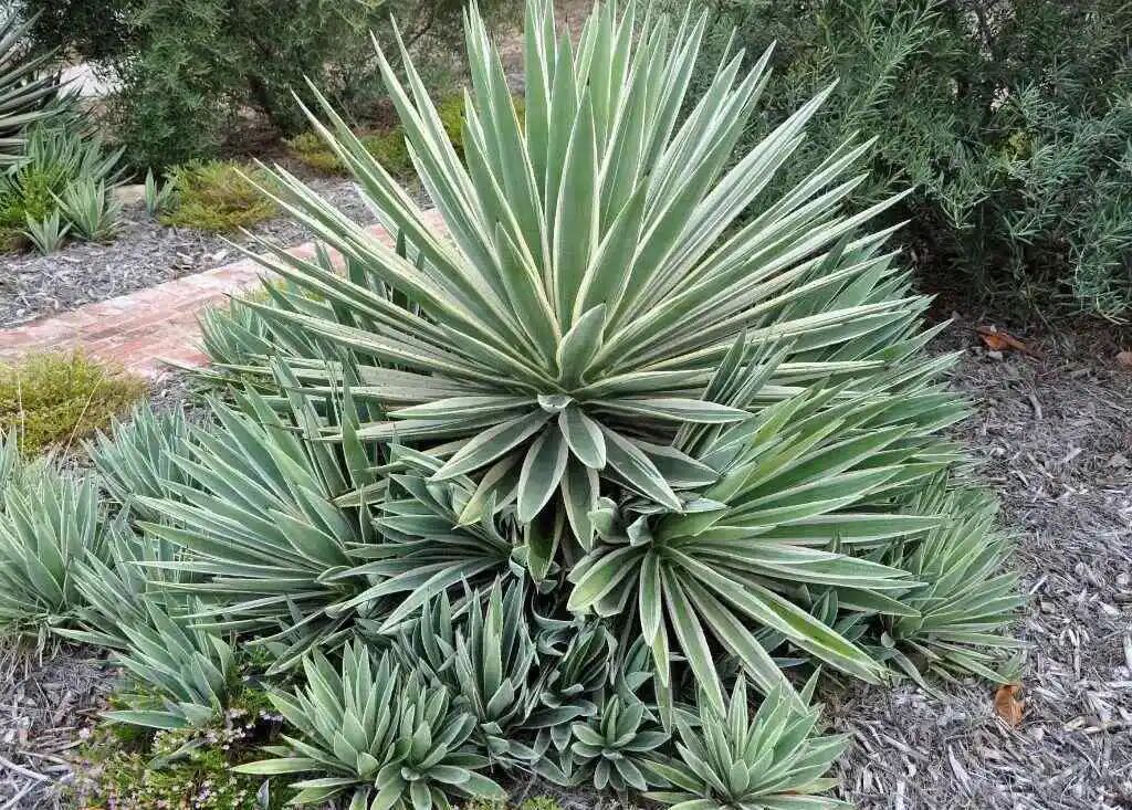 The Navarro agave is similar to the Queen Victoria agave, except that the white stripes on the leaves of the former are raised.