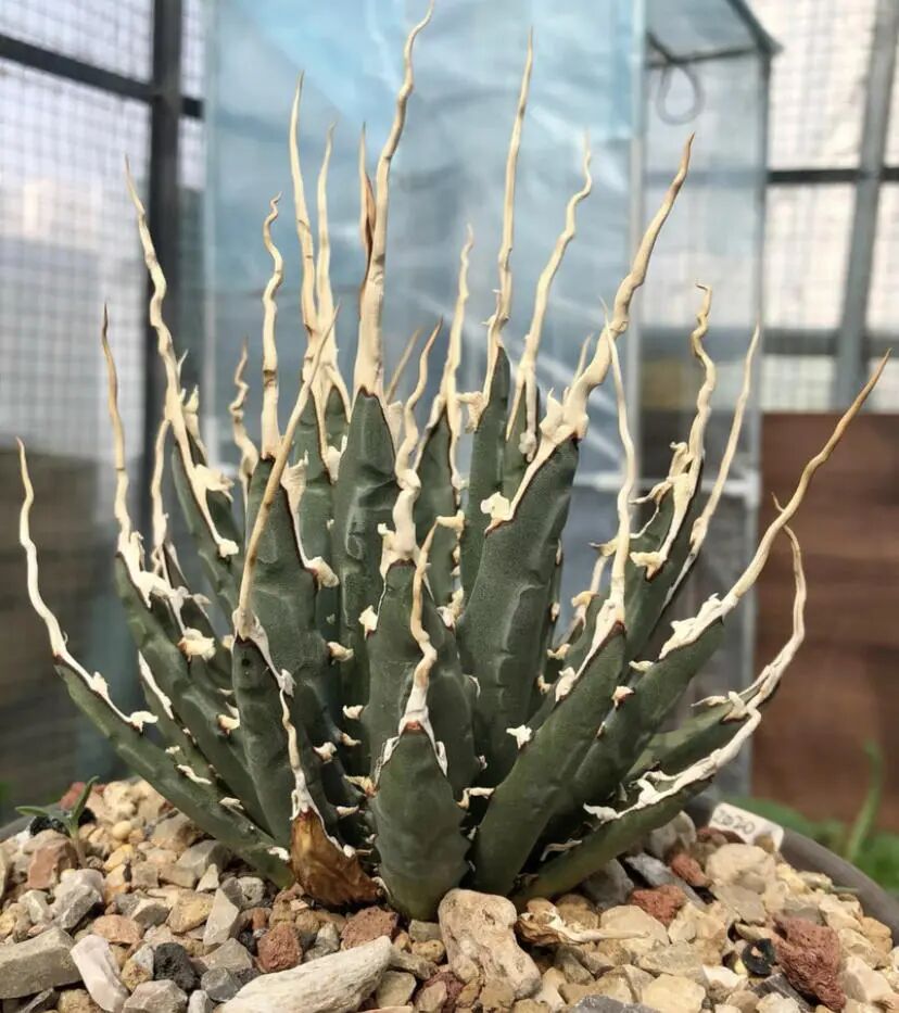 The plant height of Agave whale can reach 90 cm, the leaves are thick and white powdered, pink-blue, and the leaves are concave inward. Sometimes several ribs are formed on the leaves, like a big barbed tongue.