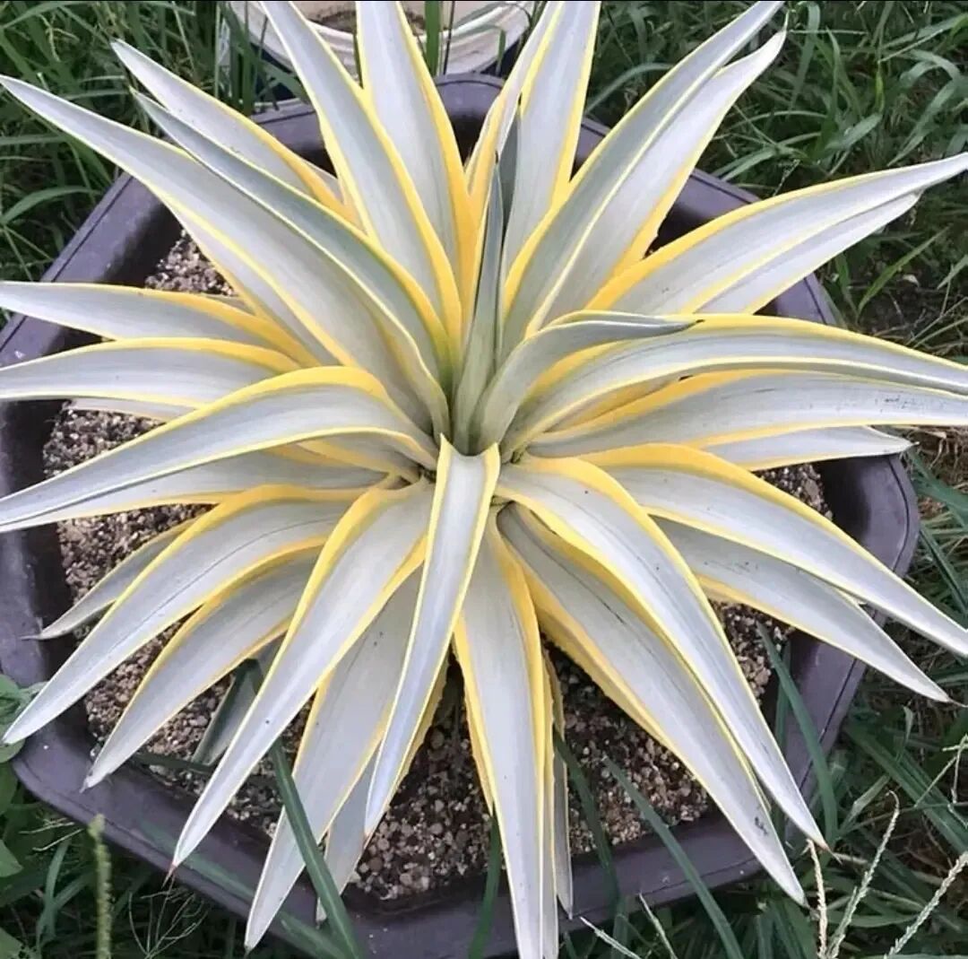 Phnom Penh Limei Agave plants are 60-90 cm high, gray-green The leaves are thick and narrow, with golden margins, and there are small tines on the edge and apex of the leaves.