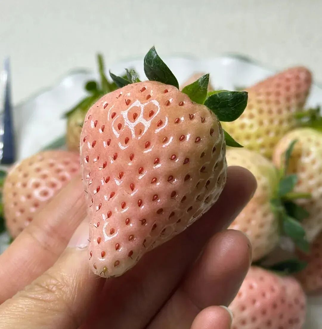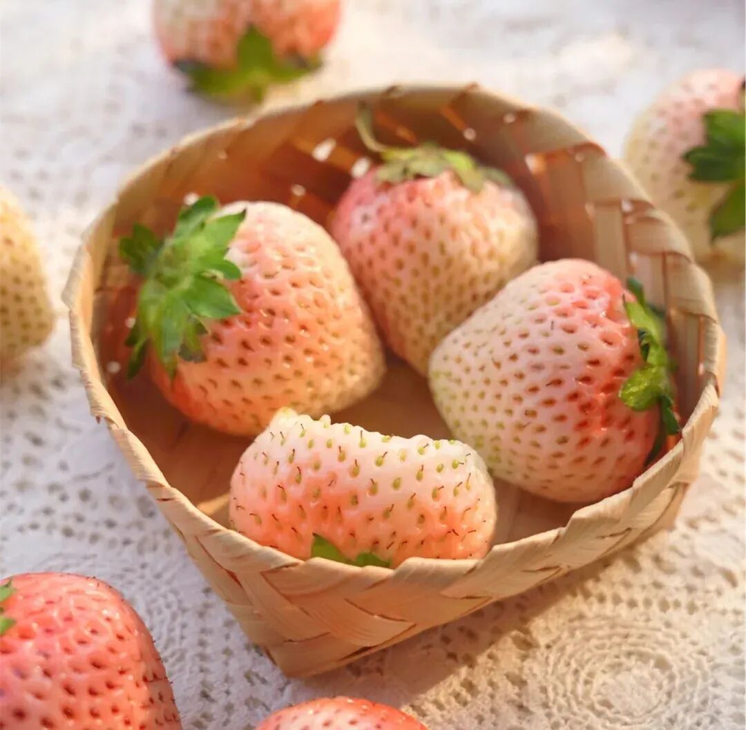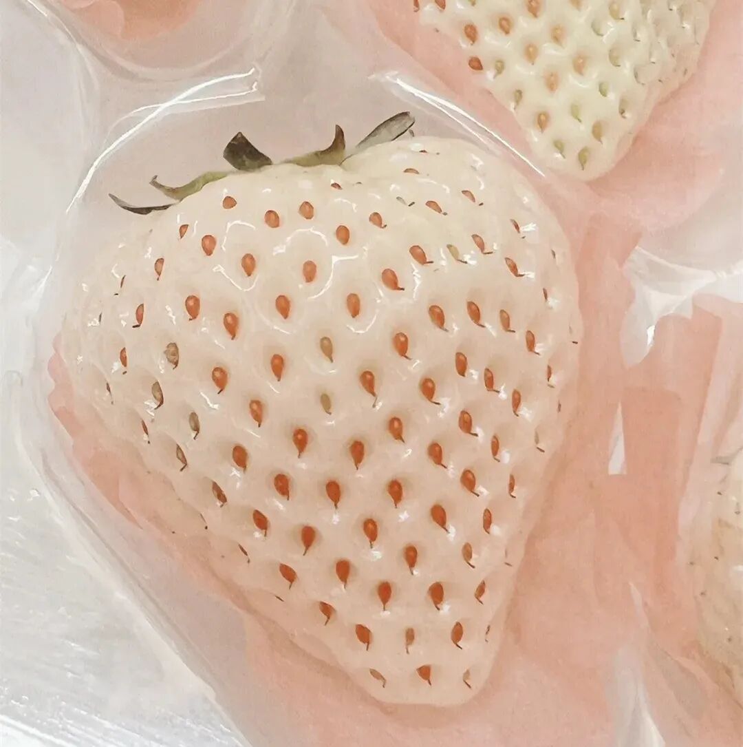 White jewel strawberry Fruit noodle Milky white ( It will have a faint pink halo when mature ) , soft and juicy taste, melts in your mouth, extremely sweet ( Scarcely noticeable acidity ), Mixed fruit with a hint of peach or pineapple 。