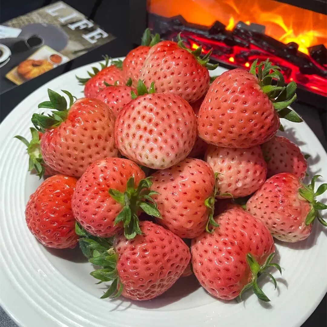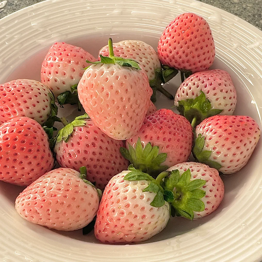 Dream Crystal Strawberry The fruit surface is orange-red, white and shiny, the flesh is pure white, and the taste is Dense, Melt in your mouth ( Like ice cream ) , High sweetness with a strong strawberry aroma.