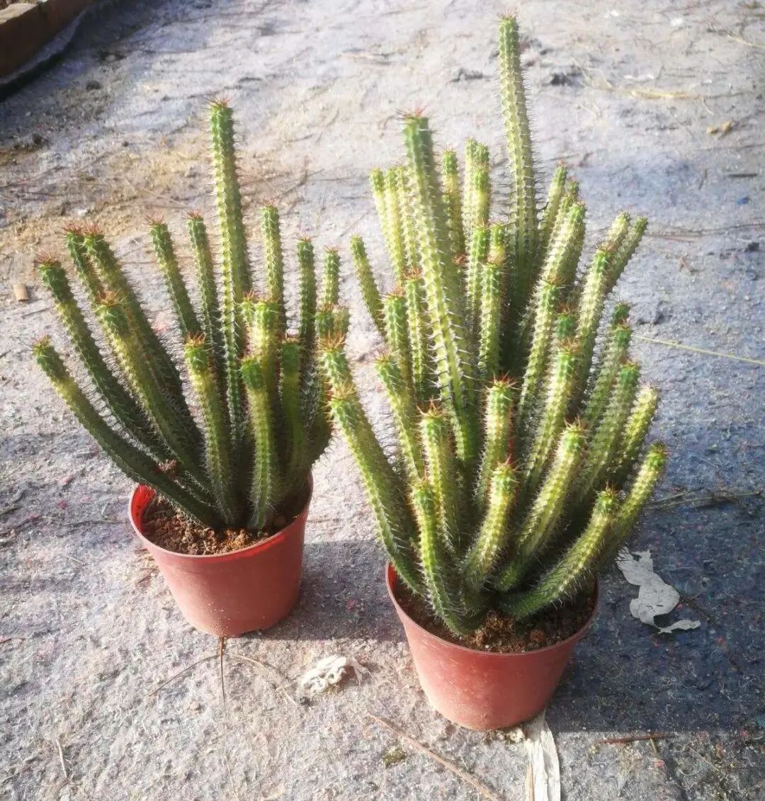 There are many branches clustered at the top of the stem of Roche unicorn, which are densely covered with long thorns. In spring and summer, slender green thin leaves will grow, and in winter, the leaves will fall off, leaving only thorny branches.