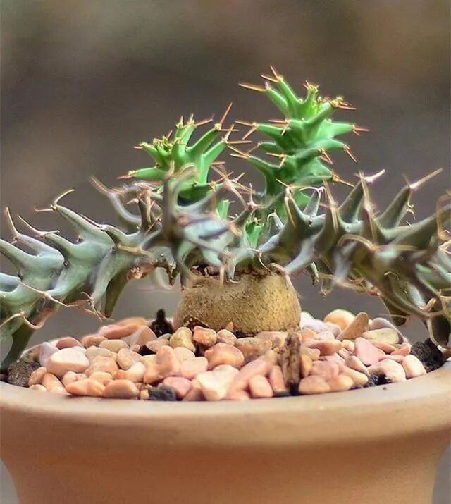 greenwayi Kirin is native to greenwayi, hence its name. The 4-ribbed stem is green to blue, with keratinized ridge shields on the edges of the ribs, long red thin thorns (thorns will turn black with age), and occasionally small leaves can be seen.