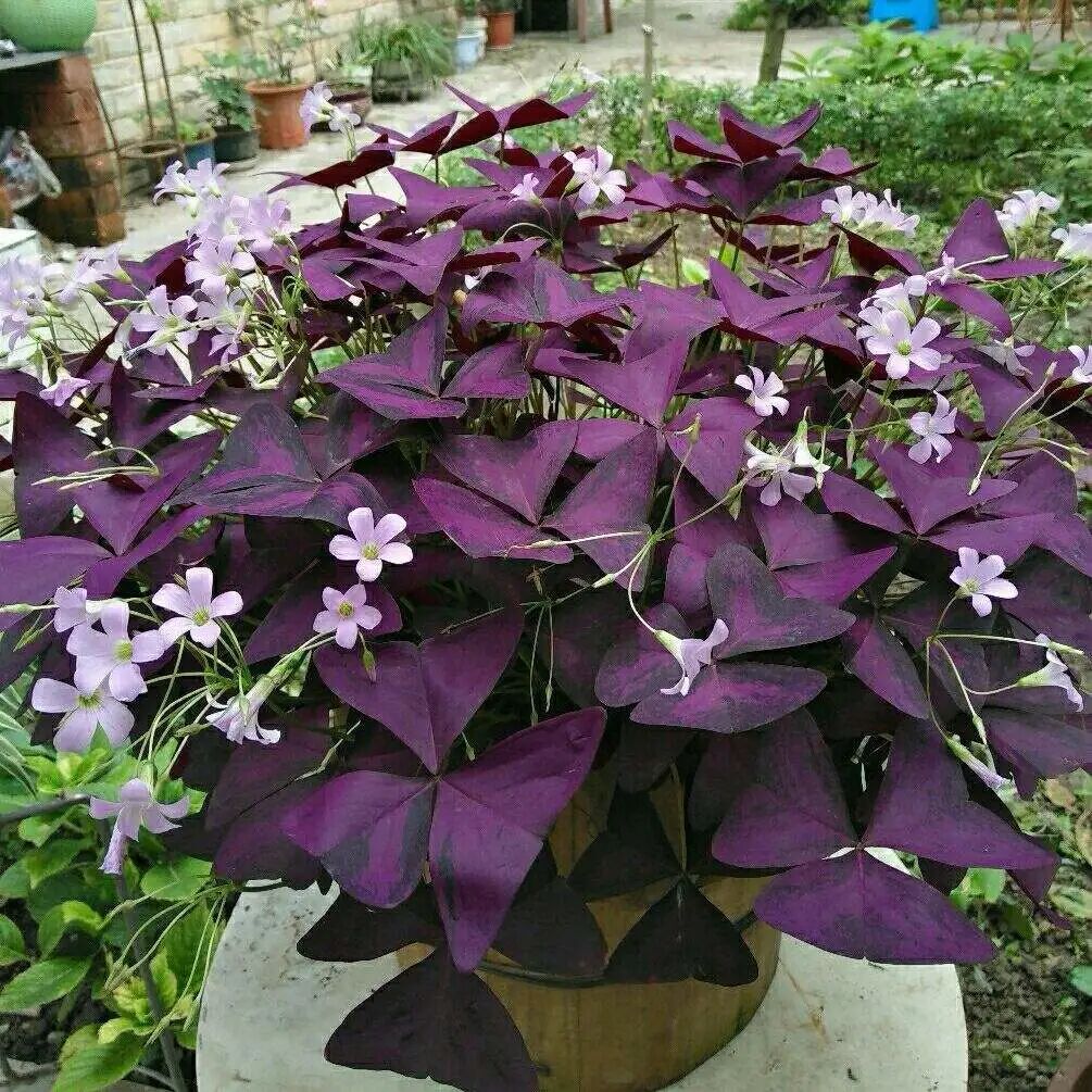 Oxalis with purple leaves and pink white flowers. Other oxalis are dormant in summer, but it blooms happily. It is a typical heat-resistant flower. Like sunshine, like humidity, and bloom all year round when properly maintained.