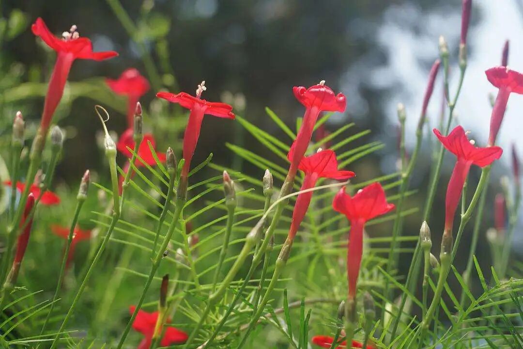 The flowers and leaves of Quamocllus are particularly peculiar (the leaves are like feathers and the flowers are like five-pointed stars), and the branches are soft, which is suitable for various shapes. It is very heat-resistant, flowering in July, the hottest month, and flowering for a long time, until autumn.