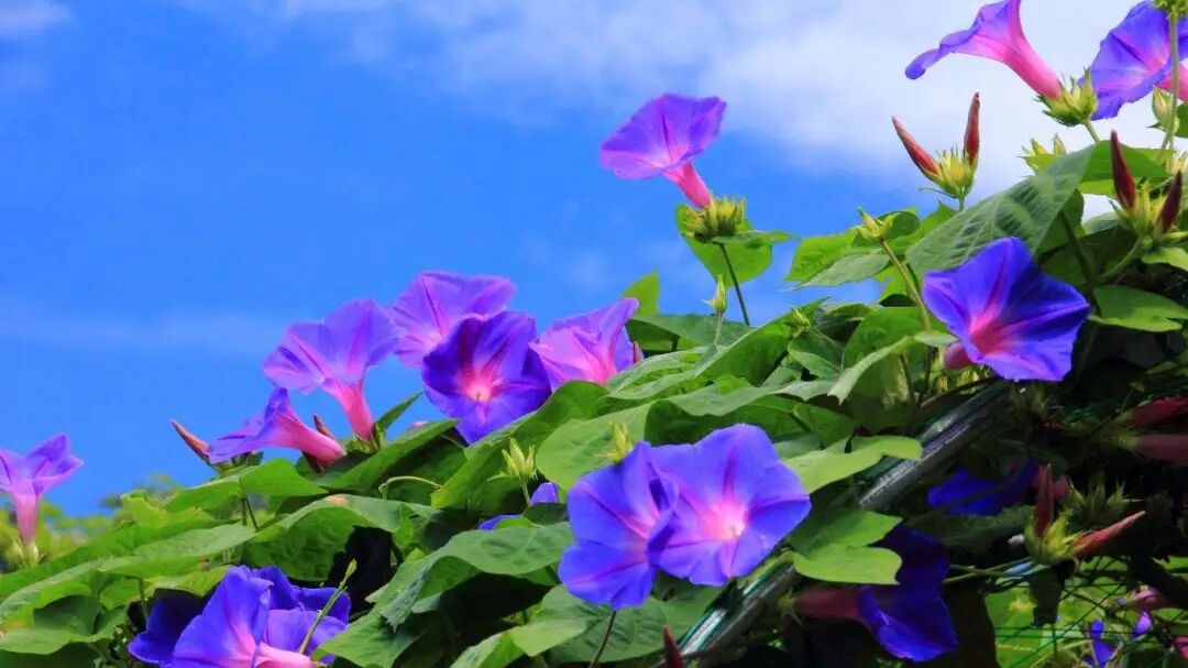 Morning glory is divided into vine-climbing and petunia varieties, both of which are heat and sun-tolerant (vine-climbing is said to be more sun-tolerant). It's okay even if it's exposed to the sun all summer, as long as you give enough water (so is Million Xiaoling).