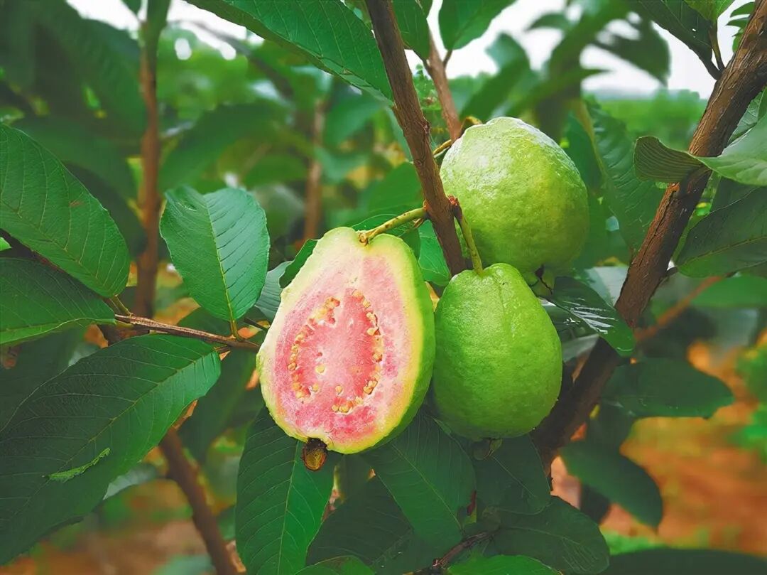 Guava The fruit is edible, and the leaves contain volatile oil and tannins 。